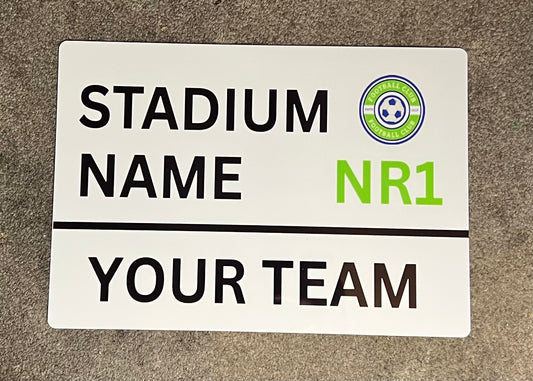 Personalised Football Stadium Sign – A4 Waterproof Aluminium – Custom Team