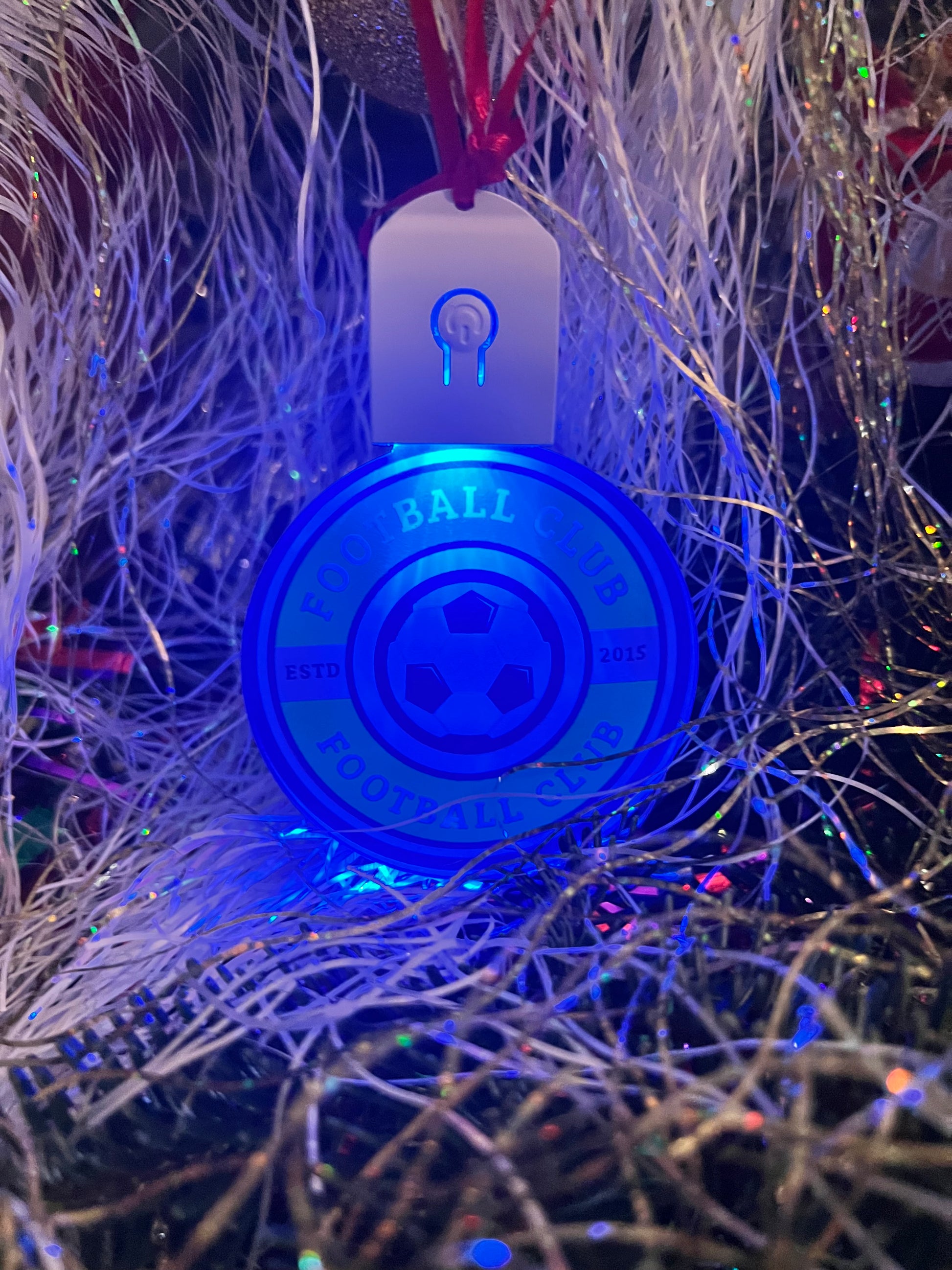Choose from static single-colour lighting or enjoy multiple colour-changing patterns—all controlled with one simple button. Whether you’re decorating your Christmas tree, gifting teammates, or celebrating a club milestone, this personalised keepsake adds a standout sparkle to any space.