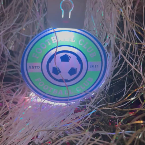 Make your festive season glow with our Light-Up Personalised Club Badge Acrylic Bauble. This 70mm custom bauble is expertly engraved with your chosen club badge, logo, or text, and illuminated from within by vibrant multi-colour LED lights.
